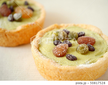 甘納豆の抹茶クリームパイ 英字バック(横位置アップ)