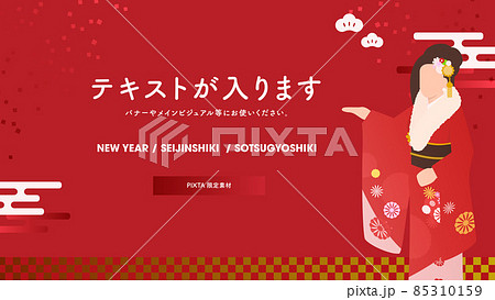 バナー・メインビジュアル「NEW YEAR」正月 新春 着物 振袖 和服 紅白 女性 16:9