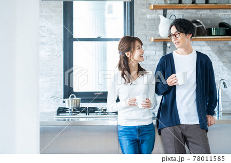 夫婦 家族 ファミリー カップル 仲良し キッチン ライフスタイル