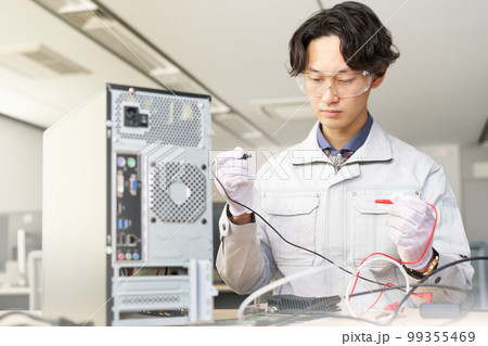 電子回路をチェックする男性スタッフ 電気エンジニア 機械エンジニア ビジネスイメージ