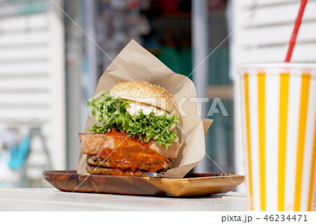 ボリュームたっぷりのハンバーガー