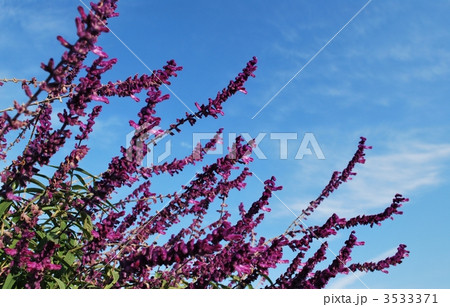 メキシカンセージの花の紫色と青空の青い色