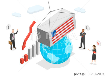 3D Isometric Flat Illustration of Trade War, Impact Of US Economic Pressure