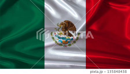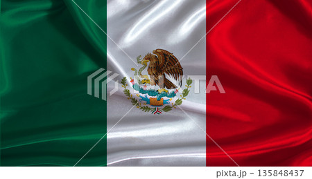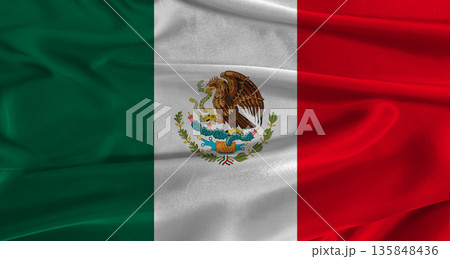 Flag of Mexico with fabric textured background. Close up of National flag of Mexico with realistic texture