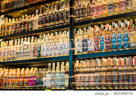 メキシコシティ 酒屋に並ぶテキーラ