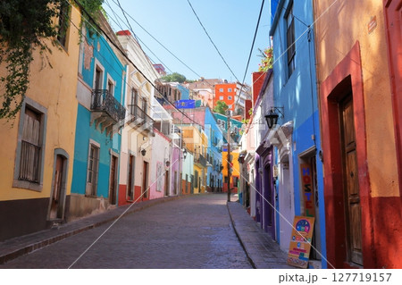 Guanajuato City historic center. Colorful homes built on hillside. Guanajuato State, Mexico.
