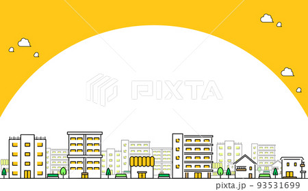家・マンション・お店・ビルが連なるシンプルで可愛い街並みの背景