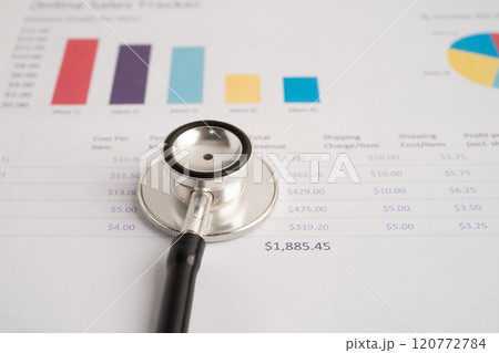 Stethoscope on spreadsheet and graph paper, Finance, Account, Statistics, Investment, Analytic research data economy and Business company.