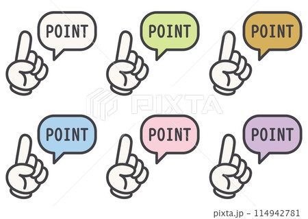 イラスト素材:ポイント,吹き出し,重要,指差,手,チェック,注目,注意