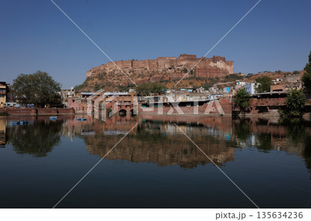 インド ジョードプルの岩山の上に建つメヘラーンガル砦