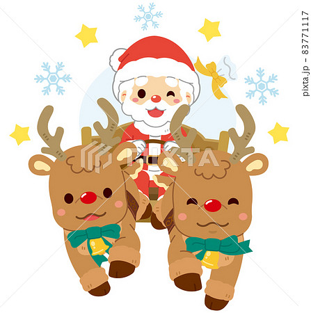 トナカイが引くソリに乗りプレゼントを届けるサンタクロース