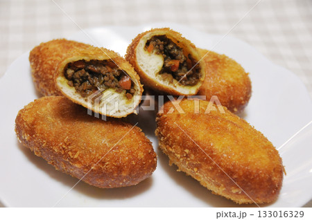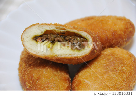 白い皿にのせられた手作りカレーパン
