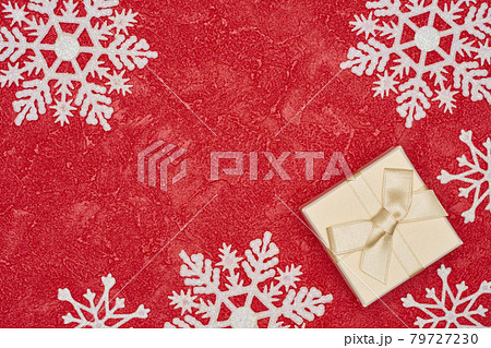 赤い背景のクリスマスイメージ とプレゼントボックス