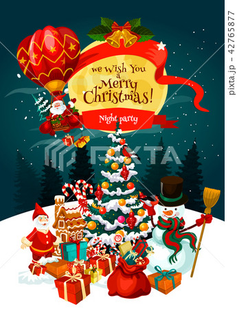 Merry Christmas Celebration Invitation Flat Cartoon Hand Drawn Style Template