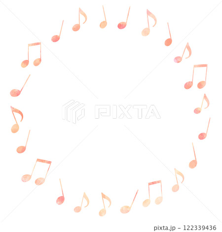 ランダムに円になったピンク系音符の水彩フレームイラスト
