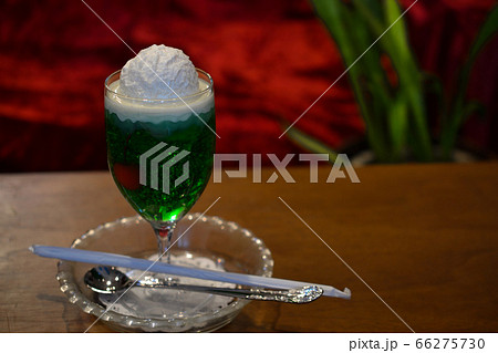 クリームソーダ 冷たい飲み物 ソフトクリームとメロンソーダ メロンフロート イメージ素材