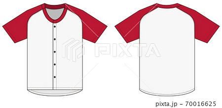 半袖 ベースボールシャツ・ユニフォーム テンプレートイラスト(赤・レッド / ホワイト)