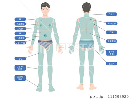 メンズ脱毛、全身(前と後ろ)とVIOの部位案内、下着着用
