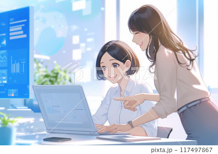 新人女性にアドバイスする先輩のビジネスウーマン_3