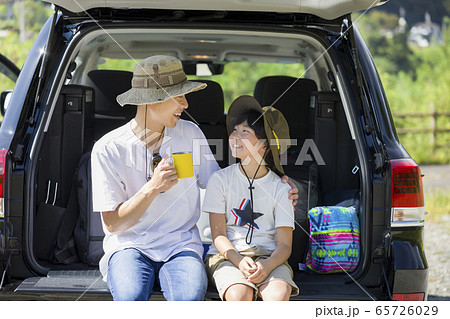 キャンプアウトドアお出かけイメージ 親子 ポートレート