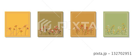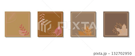 シンプルなナチュラルスクエアフレームセット、秋、紅葉、自然のイラストセット