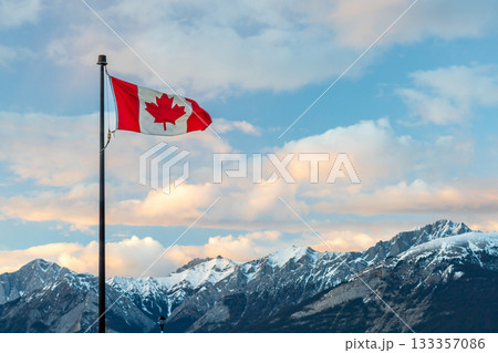 カナダ国旗メープルリーフがはためくシンボリックな風景