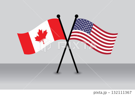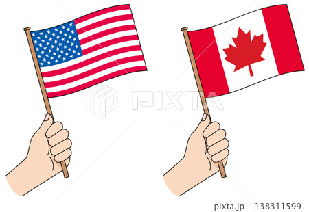 アメリカとカナダの国旗 手持ちフラッグイラスト