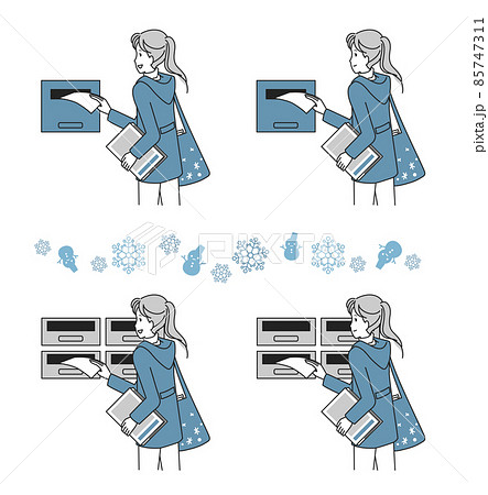 ポスティングをする若い女性 冬