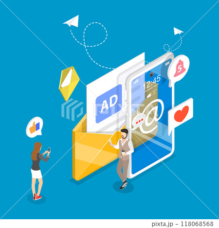 3D Isometric Flat Vector Illustration of Social Media, Email Messages And Correspondence. Item 2
