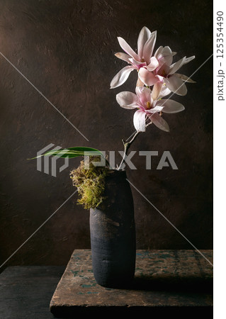 Elegant Magnolia Flowers In Dark Vase
