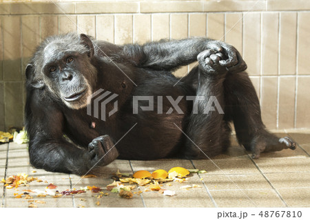 チンパンジー。リラックスしているイメージ。