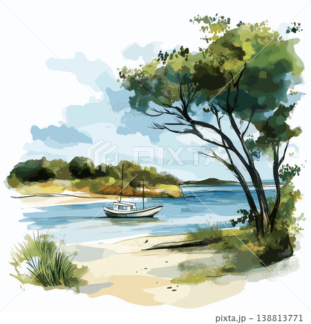 Bazaruto Archipelago. Bazaruto Archipelago hand drawn watercolor illustration on white background