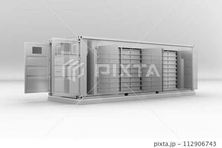 コンテナ型蓄電システムのクレイレンダリングイメージ。