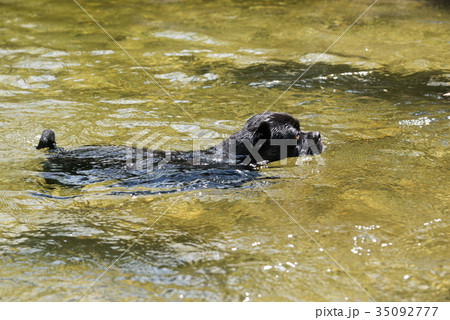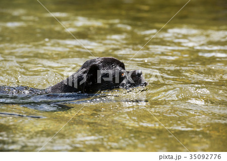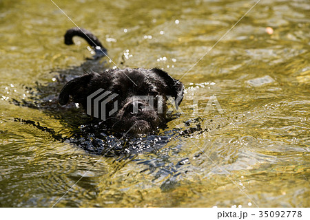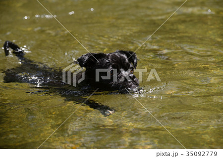 清流で泳ぐ子犬