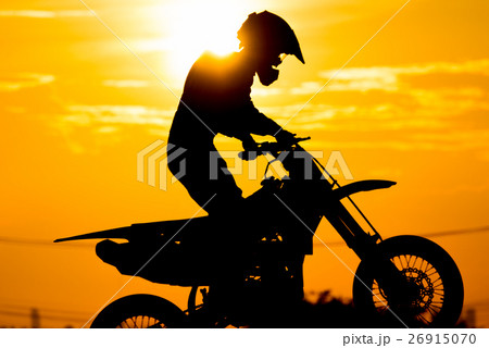 siluate of motard racer back sun light