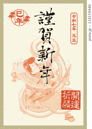 2025年賀状テンプレート「御朱印風デザイン」謹賀新年 手書き用スペース付