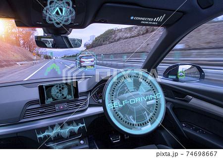 高速で走る自動運転の車 5Gテクノローのイメージ