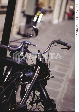ローマの旧市街地 歩道に停められている古いモペット(ガレリチーム)