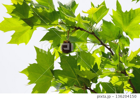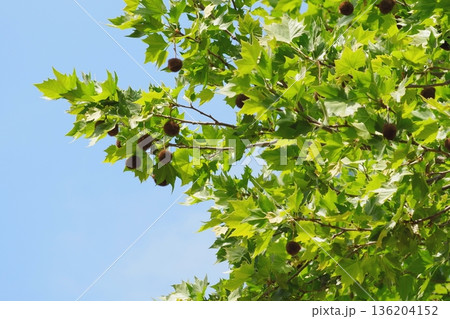 青空に映える新緑のモミジバスズカケノキ