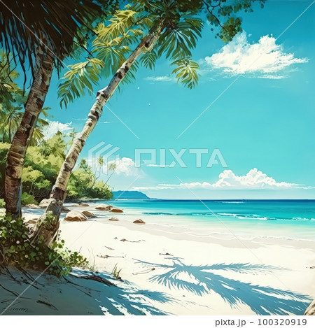 楽園の夏休み、静かな砂浜の風景