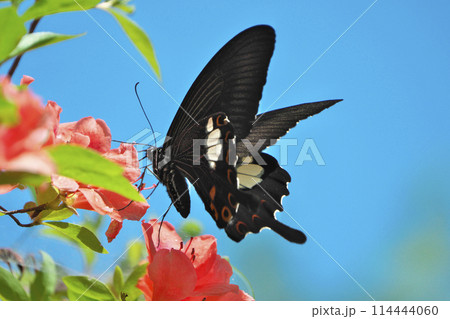 ツツジの蜜を吸うアゲハチョウ(モンキアゲハ)