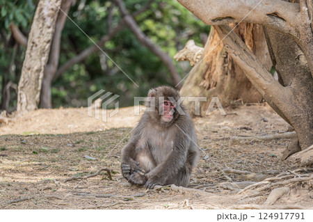 木の上にすわるニホンザル 嵐山モンキーパークいわたやま