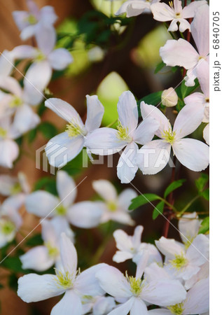 ベランダに満開のモンタナ(クレマチス)てんとう虫