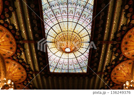 世界遺産 カタルーニャ音楽堂 天井のステンドグラス バルセロナ スペイン ヨーロッパ