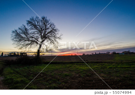 イタリア トスカーナ州 モンタルチーノ郊外の夕焼け