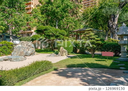 Japanese garden in Monaco (Monte Carlo district) and rock garden