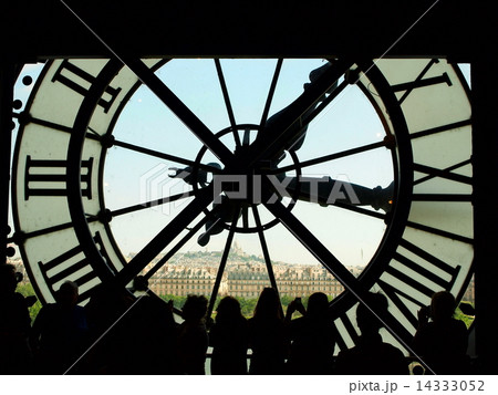 Paris cityscape through the giant glass clock at the Musee d'Orsay