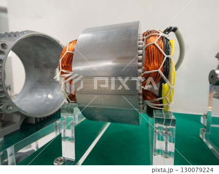 Cross section of Industrial electric motor. Electric motor parts and structure isolated on white background.