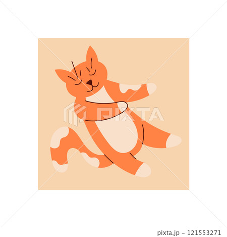 This cute character features a happy orange cat. Simple cartoon art showcases a playful animal. A friendly feline radiates joy and warmth, ideal for fun concepts, art, and social media.