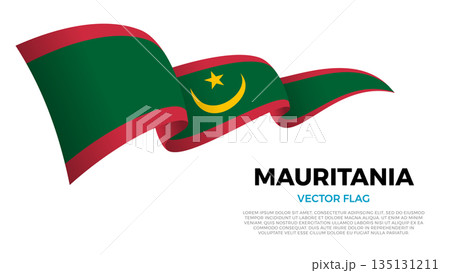 Flag of Mauritania. Mauritanian and African and Arab Culture. Shining flag with realistic shadows waving in three layers. The elegant curves and realistic shading create a sense of motion